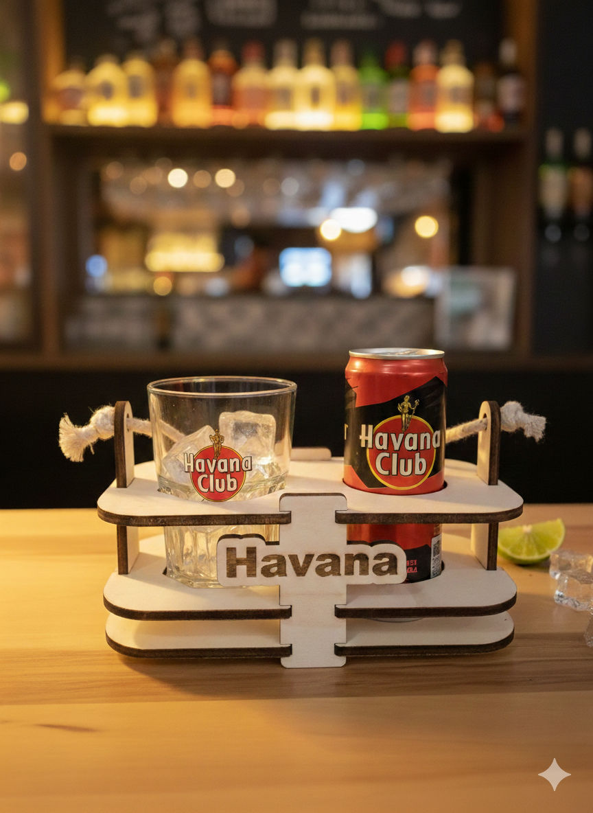 Mobile Preview: Havana-Club-Tragerl mit Glas