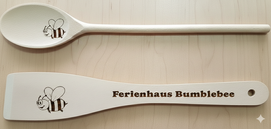 Kochlöffel und Pfannenwender mit Gravur