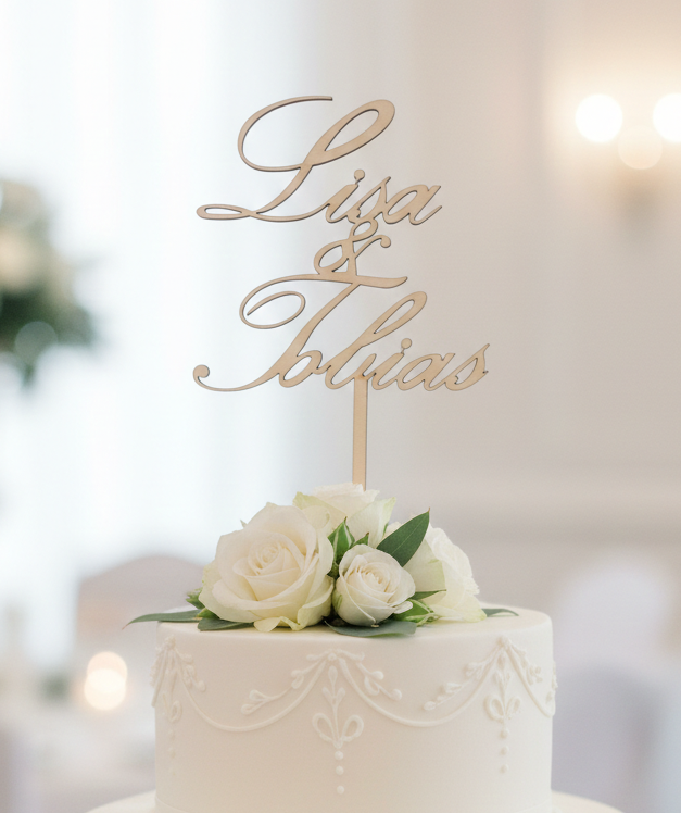 Personalisierter Cake Topper aus Pappelholz – Dein Highlight für die Hochzeit