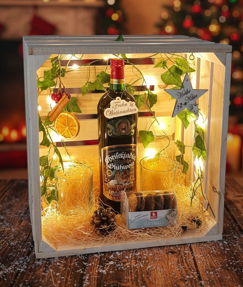 Das perfekte Weihnachtsgeschenk: Glühwein-Genussmoment in der Holzkiste